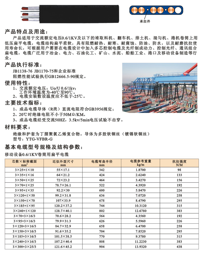 YTG-VFBR-G 港口移动设备动力通讯组合扁形电缆