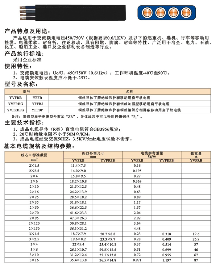 YVFRB YFFB 丁腈绝缘及护套移动用扁形软电缆